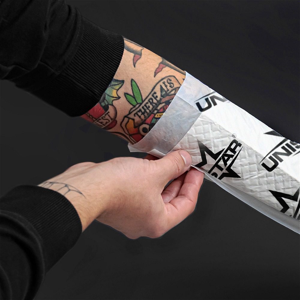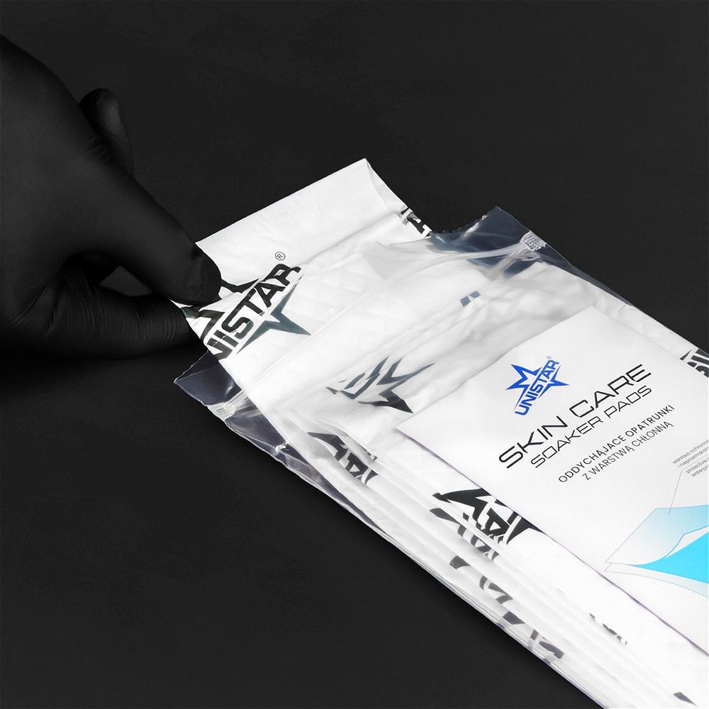 Con tres capas, las Almohadillas absorventes para el cuidado de la piel son extremadamente funcionales y súper absorbentes. La capa exterior es impermeable y protege eficazmente el tatuaje del ambiente externo. La capa intermedia absorbe eficazmente los líquidos. La capa interior, suave y transpirable, garantiza comodidad e higiene para la piel irritada por el proceso de tatuaje. Con esta solución, puedes estar seguro de brindar a tus clientes un cuidado post-tatuaje de la más alta calidad.