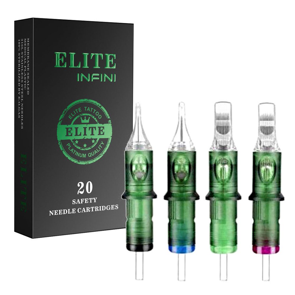 Los cartuchos ELITE infini son cartuchos para tatuar de última generación. Incorporan la tan importante membrana de seguridad para aislar la máquina de la tinta y los fluidos que pueden deteriorarla o contaminarla durante la ejecución del tatuaje.