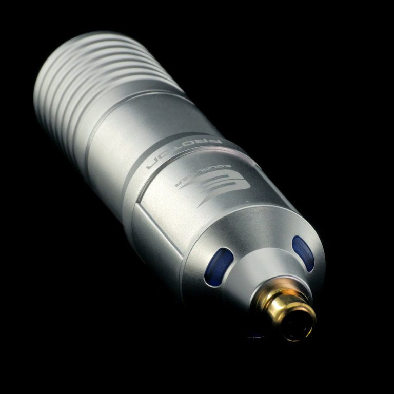 Sistema de engranajes de alta calidad que garantiza su alta fiabilidad y un funcionamiento muy silencioso. Diseñada teniendo en cuenta las necesidades de los tatuadores, resulta especialmente notable su ligereza, con un peso de tan solo 130 gramos y su adecuado tamaño, con una longitud de 11,8 cm y un diámetro de 25 mm.