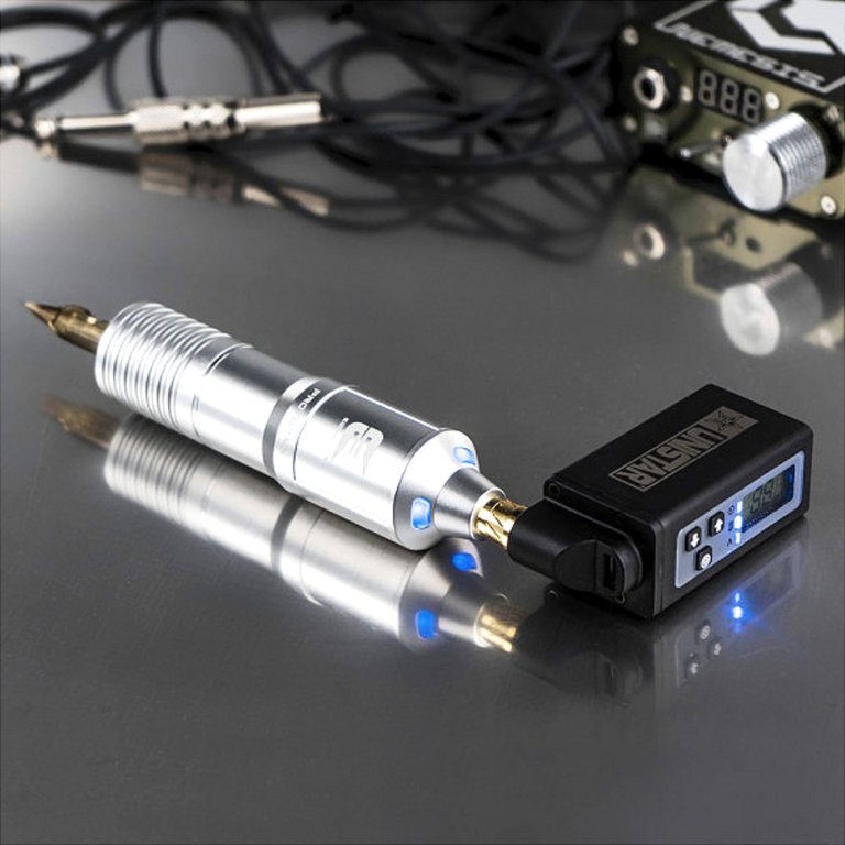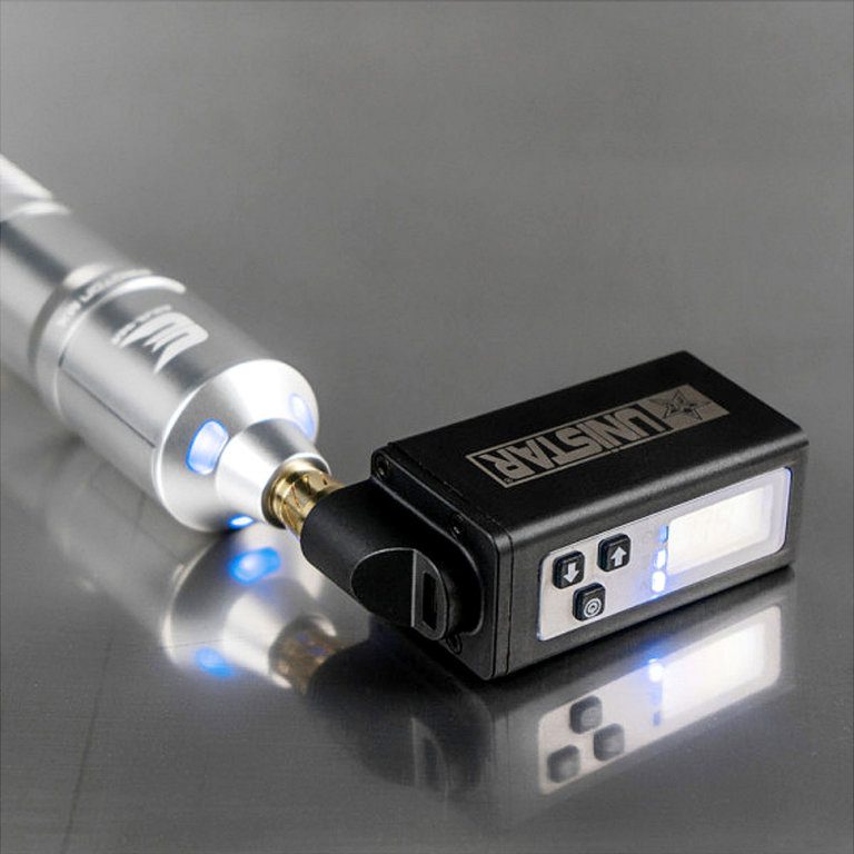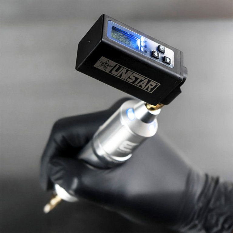 Funciona con cualquier máquina de tattoo con conector de alimentación RCA (el que utilizan prácticamente todas las máquinas).
