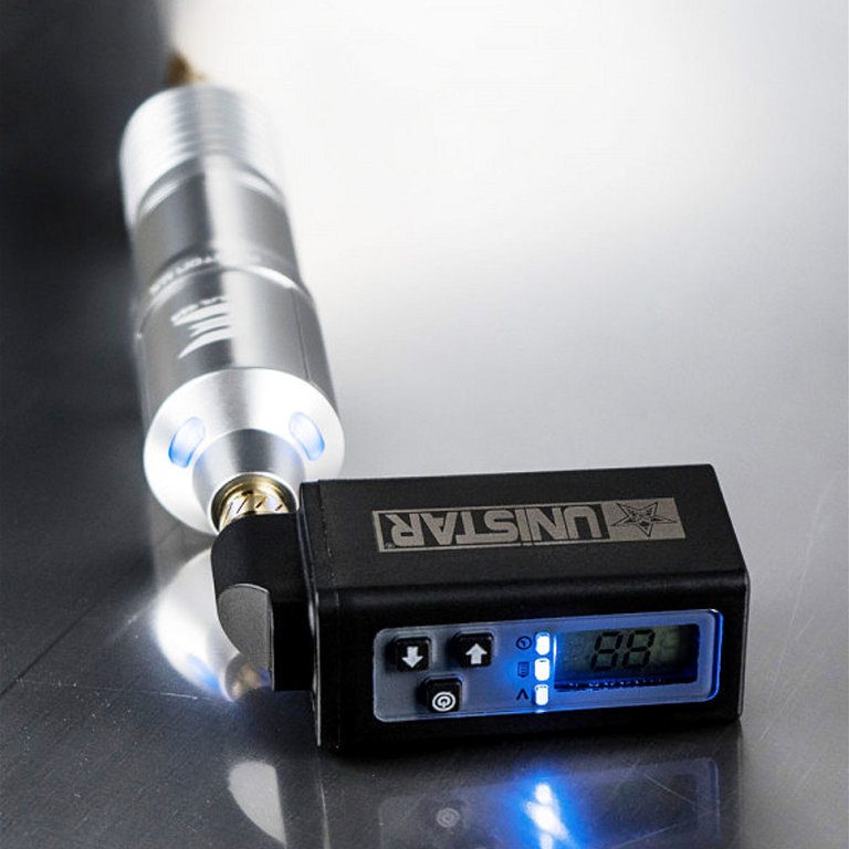 La botonera incorporada es de alta precisión y suave pulsación. Responde con precisión y rapidez a los requerimientos del tatuador.