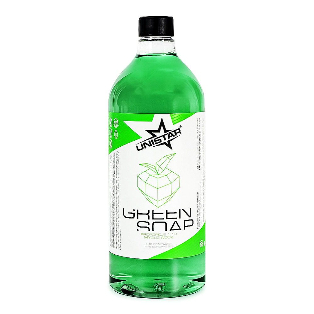 Producto de alto rendimiento. Se presenta en envase de un litro altamente concentrado. Para su utilización mezclar una parte de Unistar Green Soap con 10 partes de agua destilada. Con un envase se producen 11 litros de la solución jabonosa a utilizar.