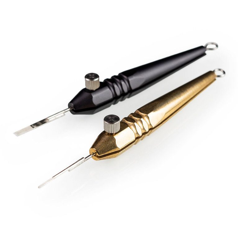Dos variantes de diferente material, identificables por su color. La versión negra es de aleción ligera, con un peso de 29 gramos. La versión dorada es de aleación de cobre, con un peso de 85 gramos.