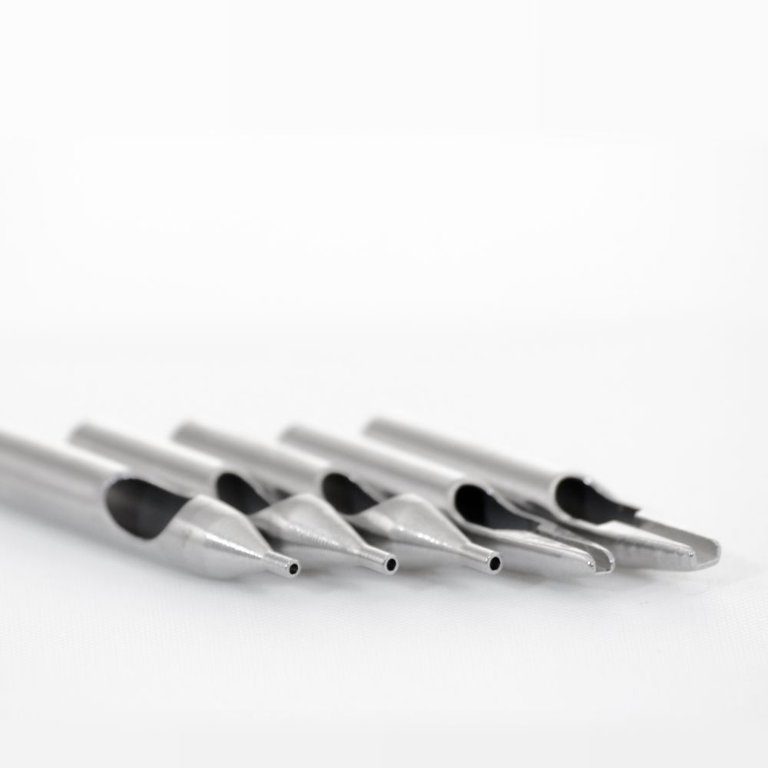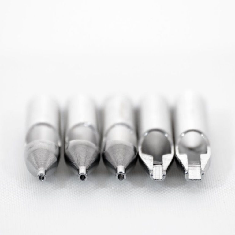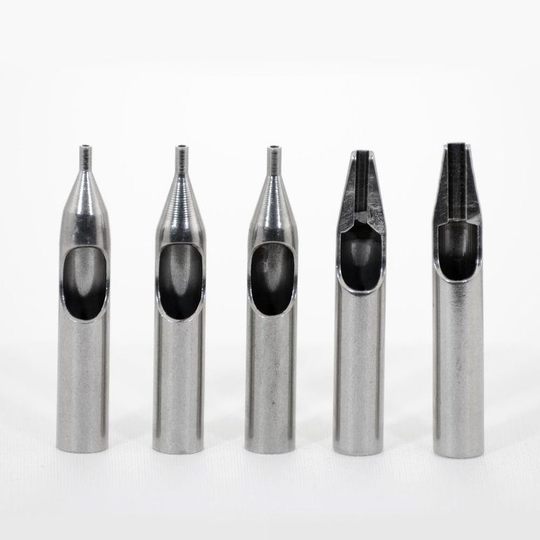 Kit de cinco puntas de acero inoxidable variadas para máquinas de tatuar.