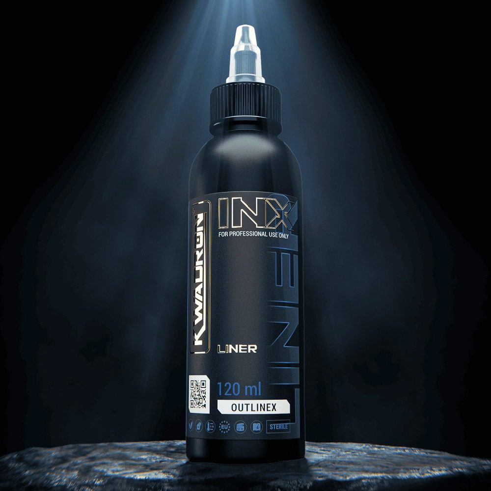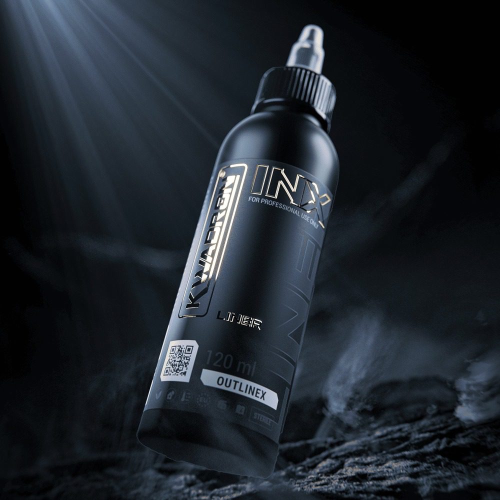 Kwadron INX Outlinex se creó para artistas que buscan precisión y suavidad absolutas al trazar líneas largas. Cada trazo se desliza sin esfuerzo sobre la piel, dejando una marca perfectamente uniforme. Su consistencia es ideal para garantizar que la tinta se mantenga constante durante toda la sesión: no se seca en la punta, no gotea y conserva el mismo negro intenso desde el primer segundo hasta el último. Esta estabilidad y predictibilidad te permiten concentrarte plenamente en crear arte.