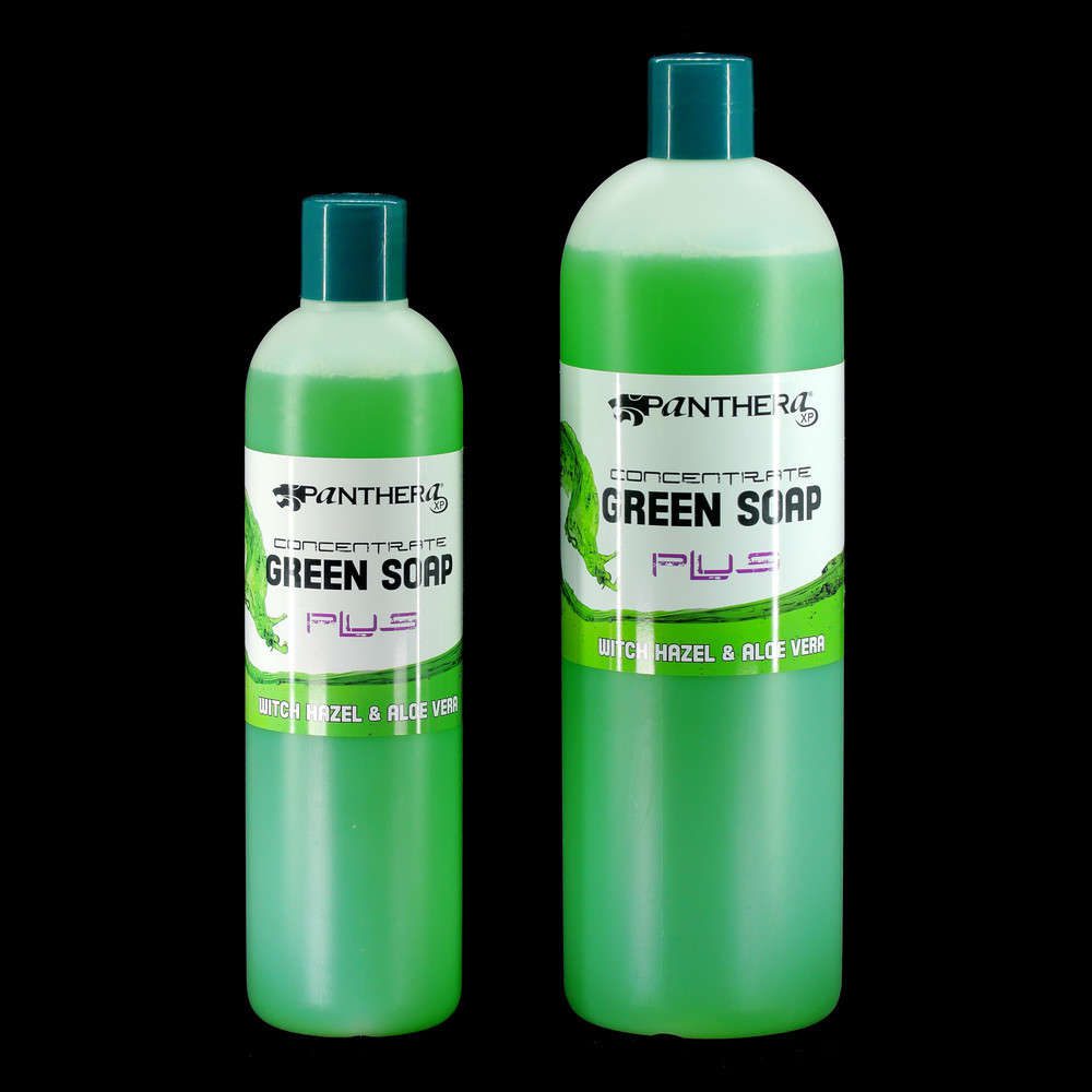 Se presenta en forma de concentrado. Para su utilización, se puede utilizar tal cual se presenta o diluirlo hasta mezclar una parte de Panthera Concentrate Green Soap PLUS con 4 partes de agua destilada. Con un envase se puede producir hasta 5 litros de la solución jabonosa a utilizar.