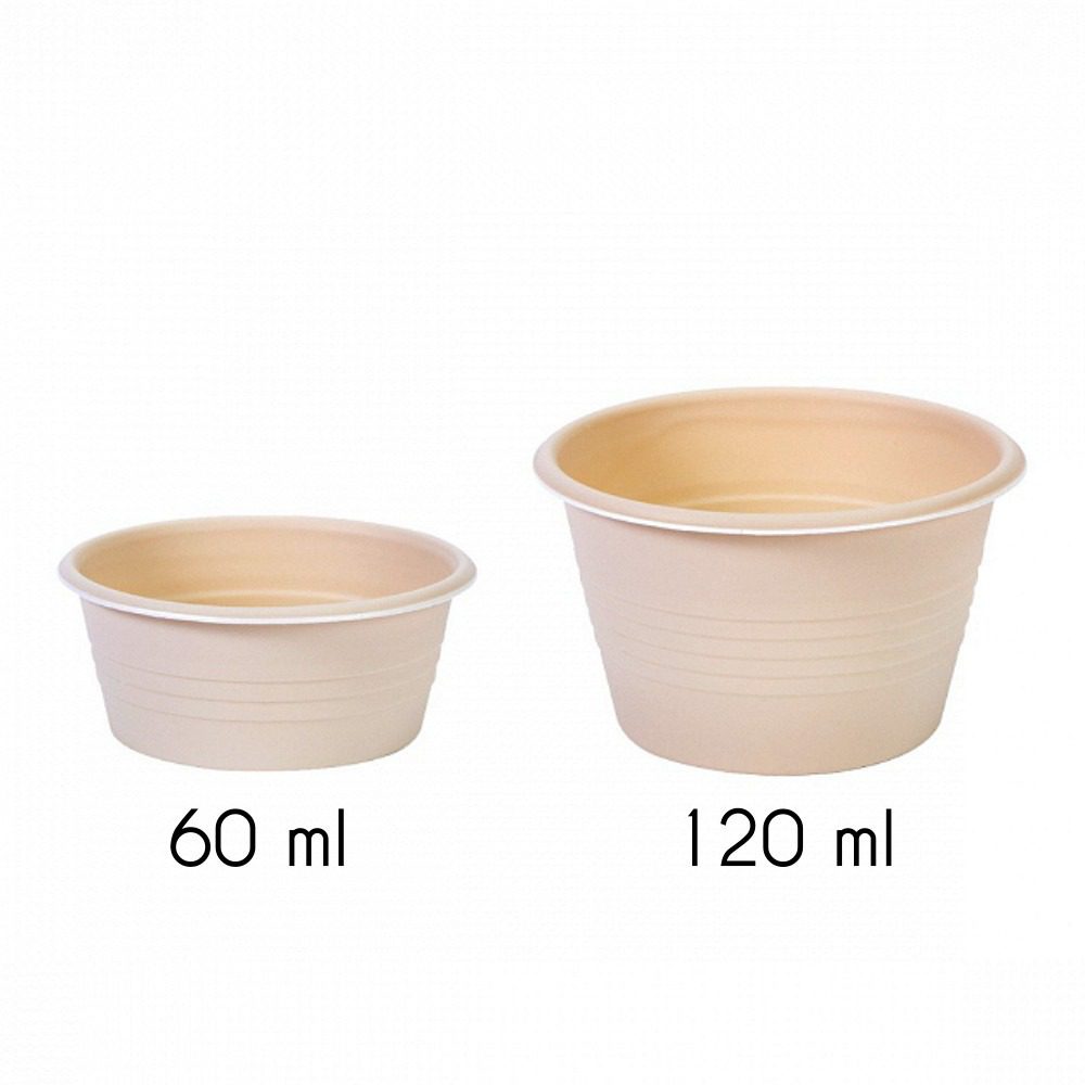 Vasos 100% biodegradables a elegir entre dos tamaños: 60 ml y 120 ml.